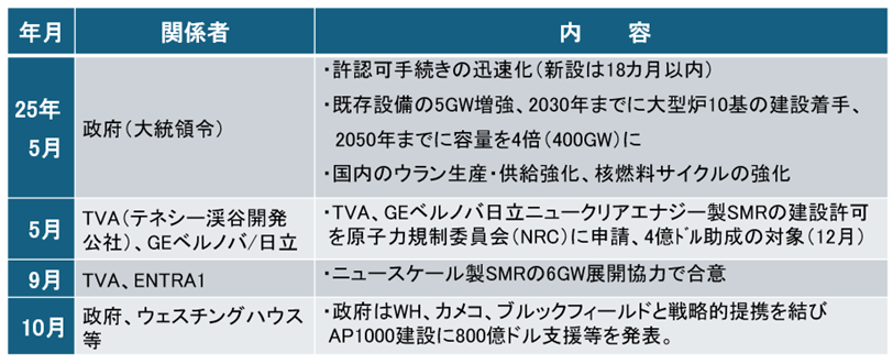 表2.米国での原子力発電開発を巡る動き /大統領令発出を機に活発な動き