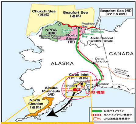 アラスカは、天然ガスパイプラインとLNG基地の新設が注目されたが、原油が先行する形となる。原油インフラは、既設設備を利用できること、日本を含むアジア諸国は原油調達の多様化がより差し迫った課題であることが背景にある。