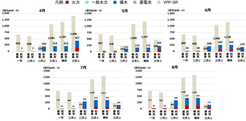 図1.需給調整市場での東電エリア・リソース別約定量の状況 (2024年4月~2024年8月)