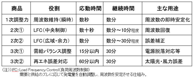 表1.需給調整市場の商品一覧